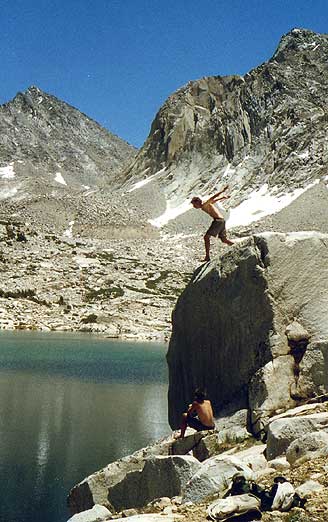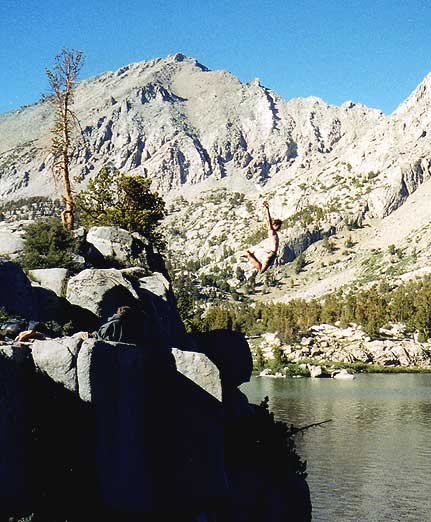 Pat jumping into one of the Rae Lakes. This lake was ICE COLD!